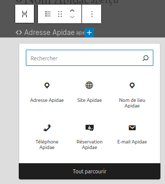 Pour composer l’affichage d’un élément. Ils peuvent être utilisés dans les blocs généraux ou dans la page unique d’objet touristique Apidae.