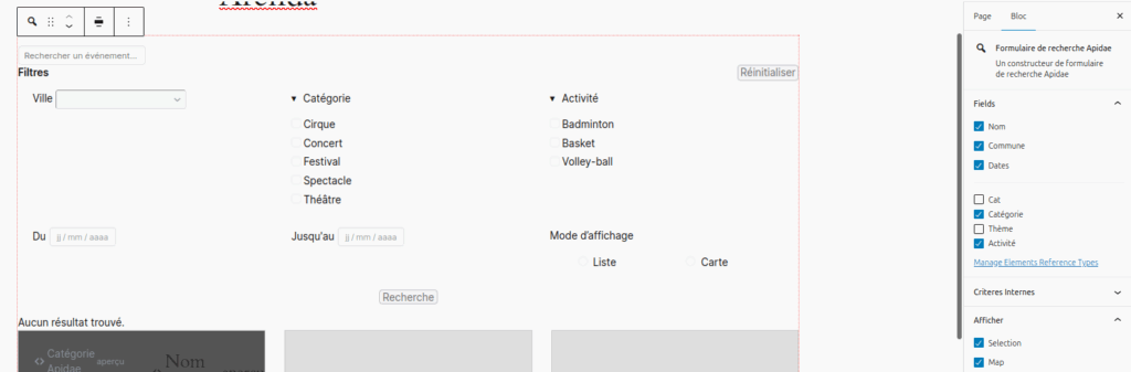 • Liste d’éléments Apidae (Évènements Apidae)