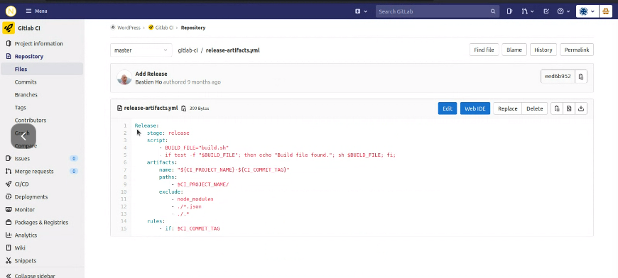 - Fichiers : ce nouvel onglet affiche toutes les versions disponibles de votre projet, grâce aux balises Gitlab.
