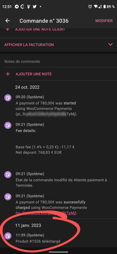 - Lorsqu’une version est téléchargée, la commande est mise à jour avec une nouvelle note.