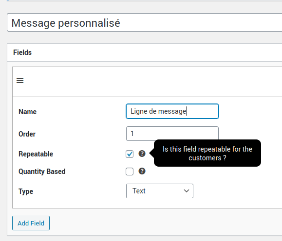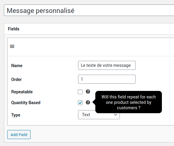 Woocommerce Add-ons Products: Repetitive and free fields or depending on the quantity