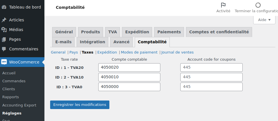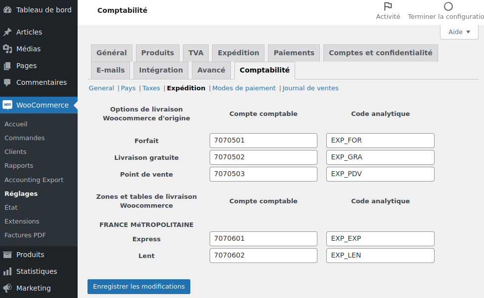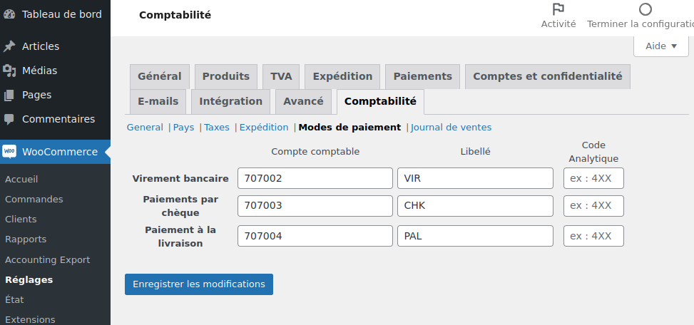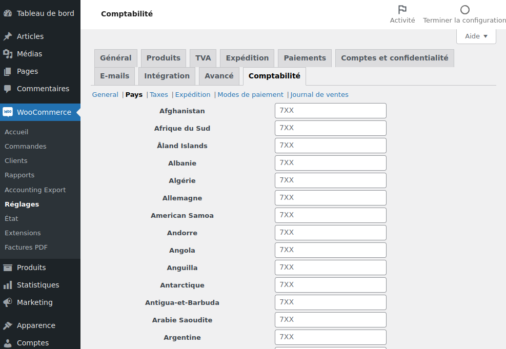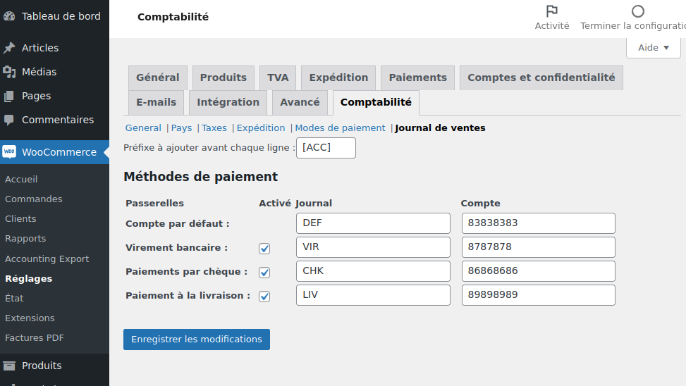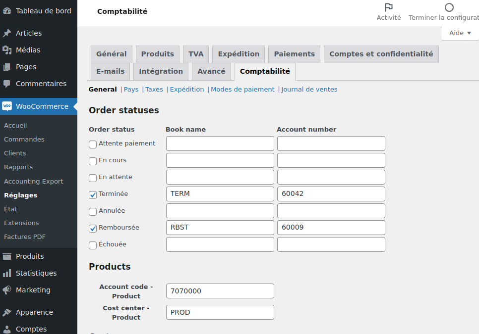 Exportez ce que vous voulez : visuel Comptabilité pour Woocommerce