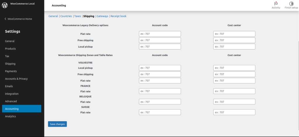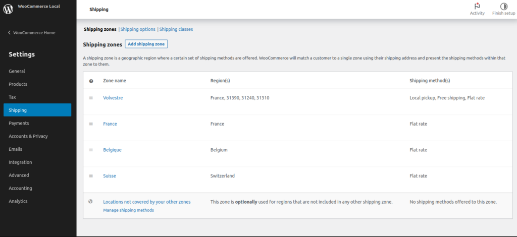This requires having configured the different shipping areas. WooCommerce Accounting is based on WooCommerce’s shipping areas.