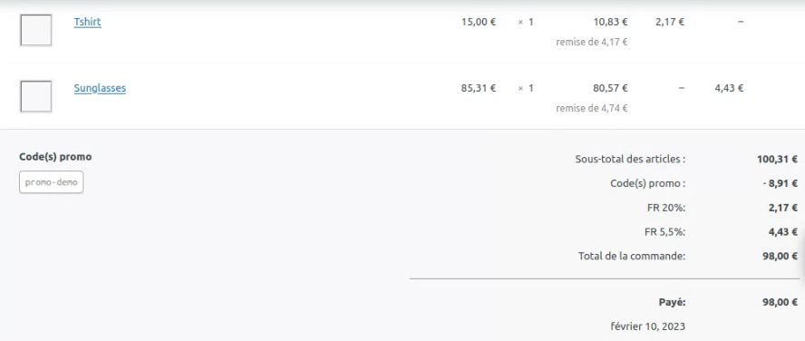 - Un code promo pour la commande